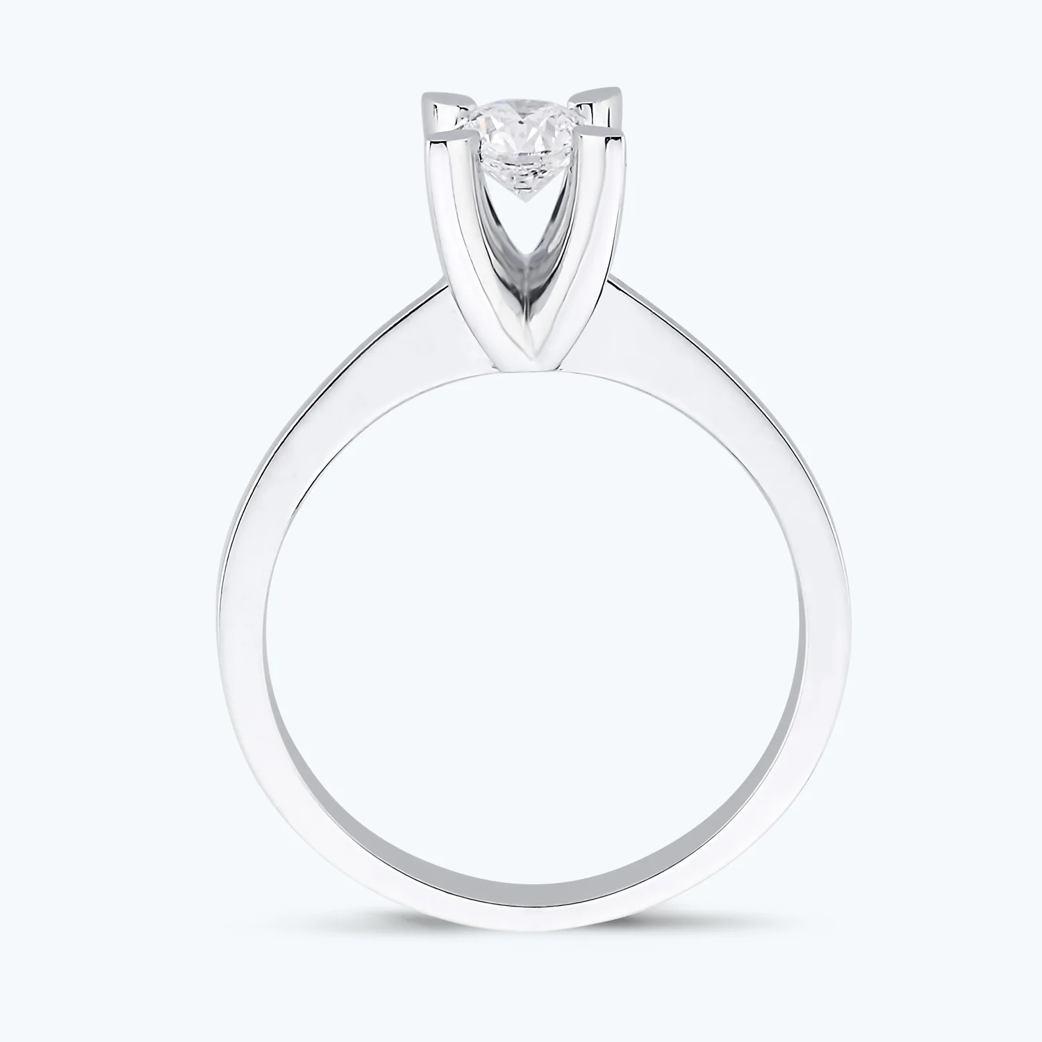 At the heart of this ring sits a round solitaire diamond. This diamond isn't just a stone; it's a harbinger of good fortune, a beacon of love that shines as brightly as your affection for each other. Its sparkling presence on your finger will serve as a constant reminder of the moment when two hearts unite, making it the ideal choice for an engagement ring.